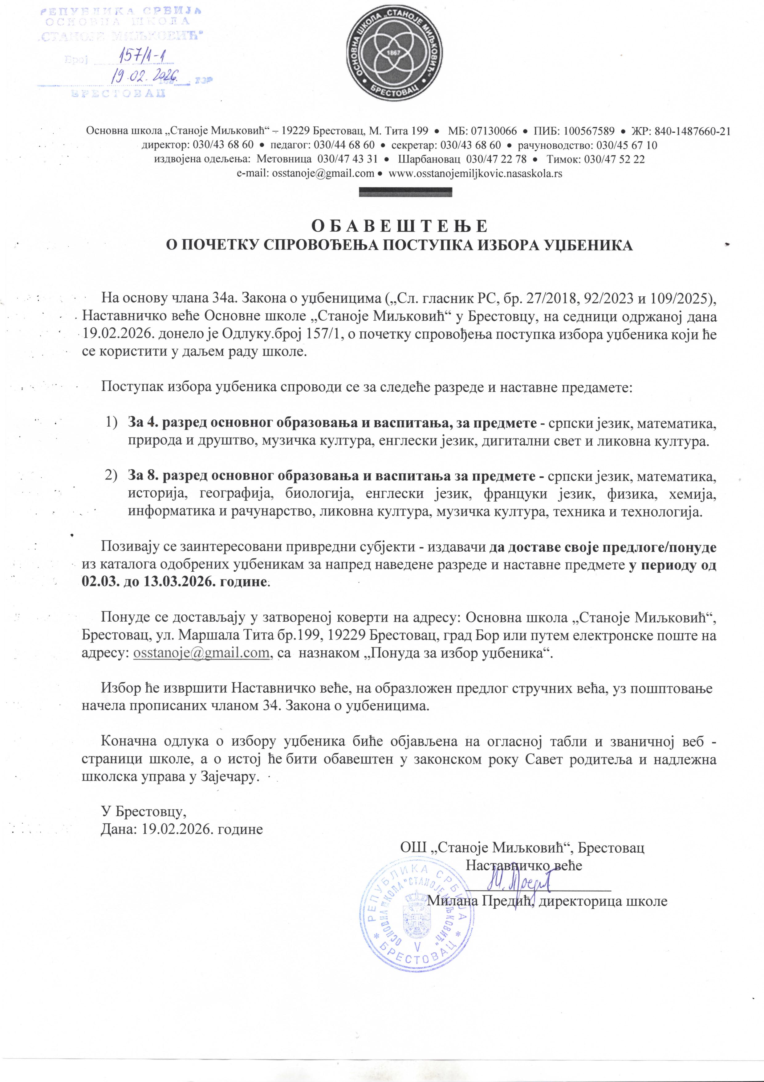ОБАВЕШТЕЊЕДатум: 19. Februar 2026 19:53 Категорија: Инфо
